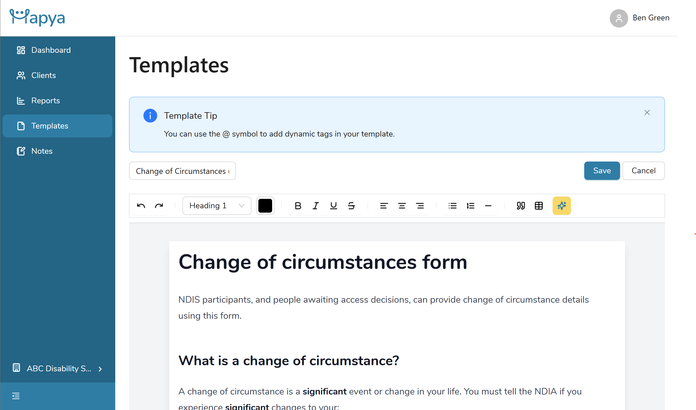 Using Hapya has completely transformed the way I prepare reports. What used to take me hours now takes minutes, and the AI ensures everything is accurate and compliant with NDIA standards.